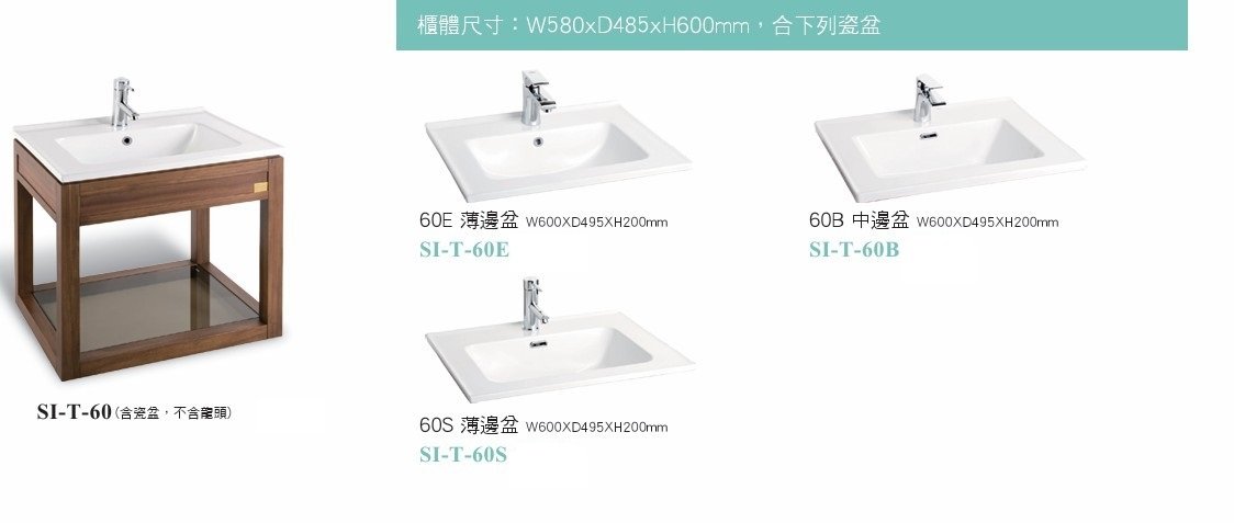 瓷盆可自行選配60B中邊盆、60E薄邊盆、60S薄邊盆