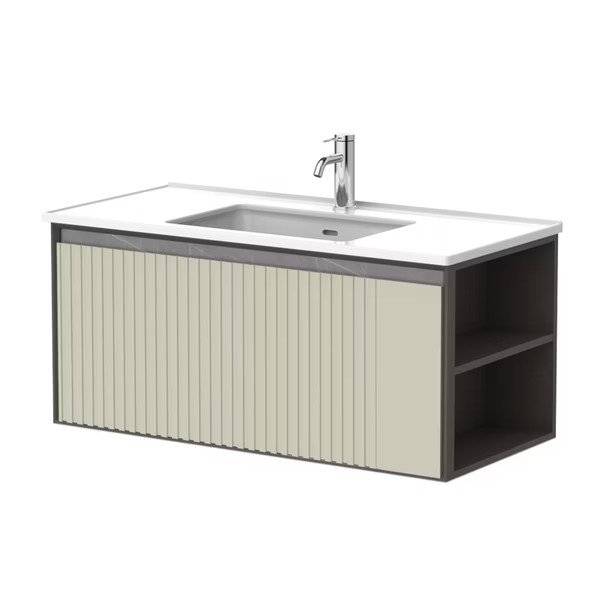 innoci 90cm浴室抽屜櫃-左/右側邊櫃_木蘭亞灰 (NM49023ZN-L 浴室櫃體 和 NNC22167W-1 檯上盆) M423ZN-90
