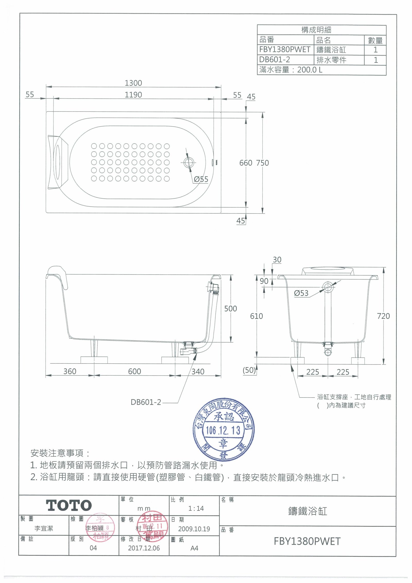 TOTO 嵌入式 鑄鐵浴缸 FBY1380PWET 130CM