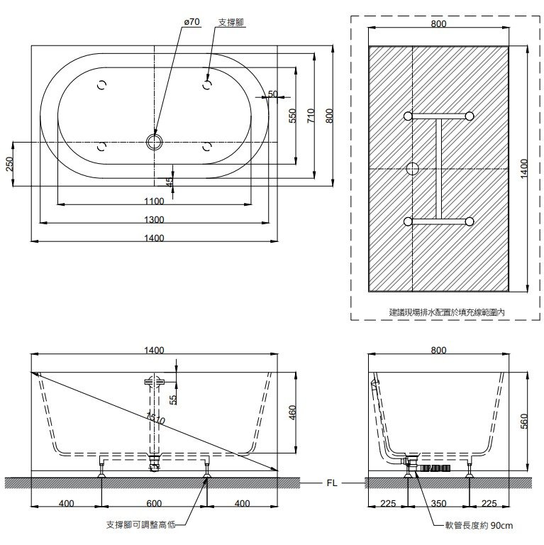 OVO 獨立浴缸 BK103A(110~170cm)