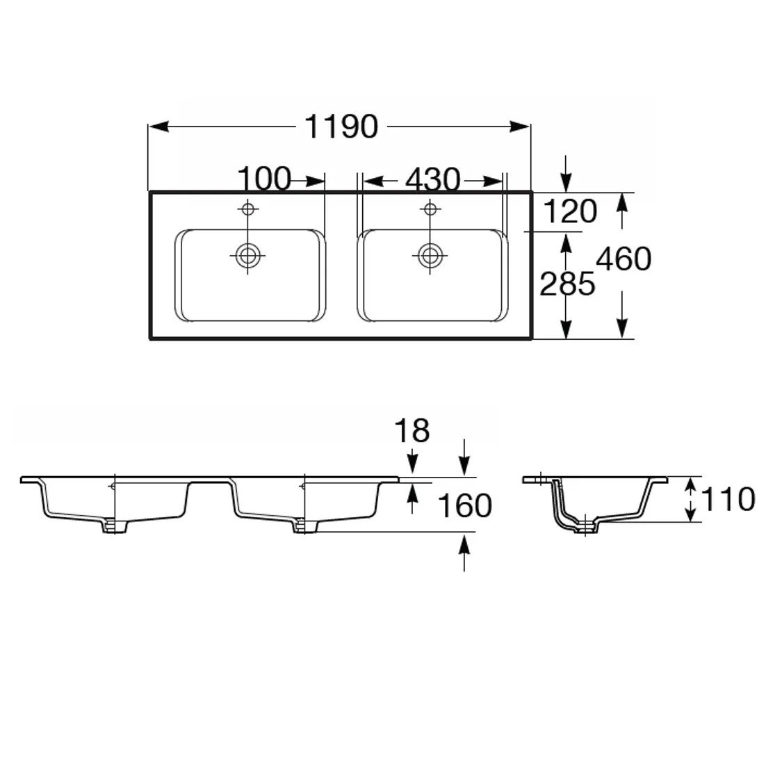 Roca Gap 雙槽洗臉盆 120×46 cm 白色 A3279A0000 (雙盆可配面盆櫃)
