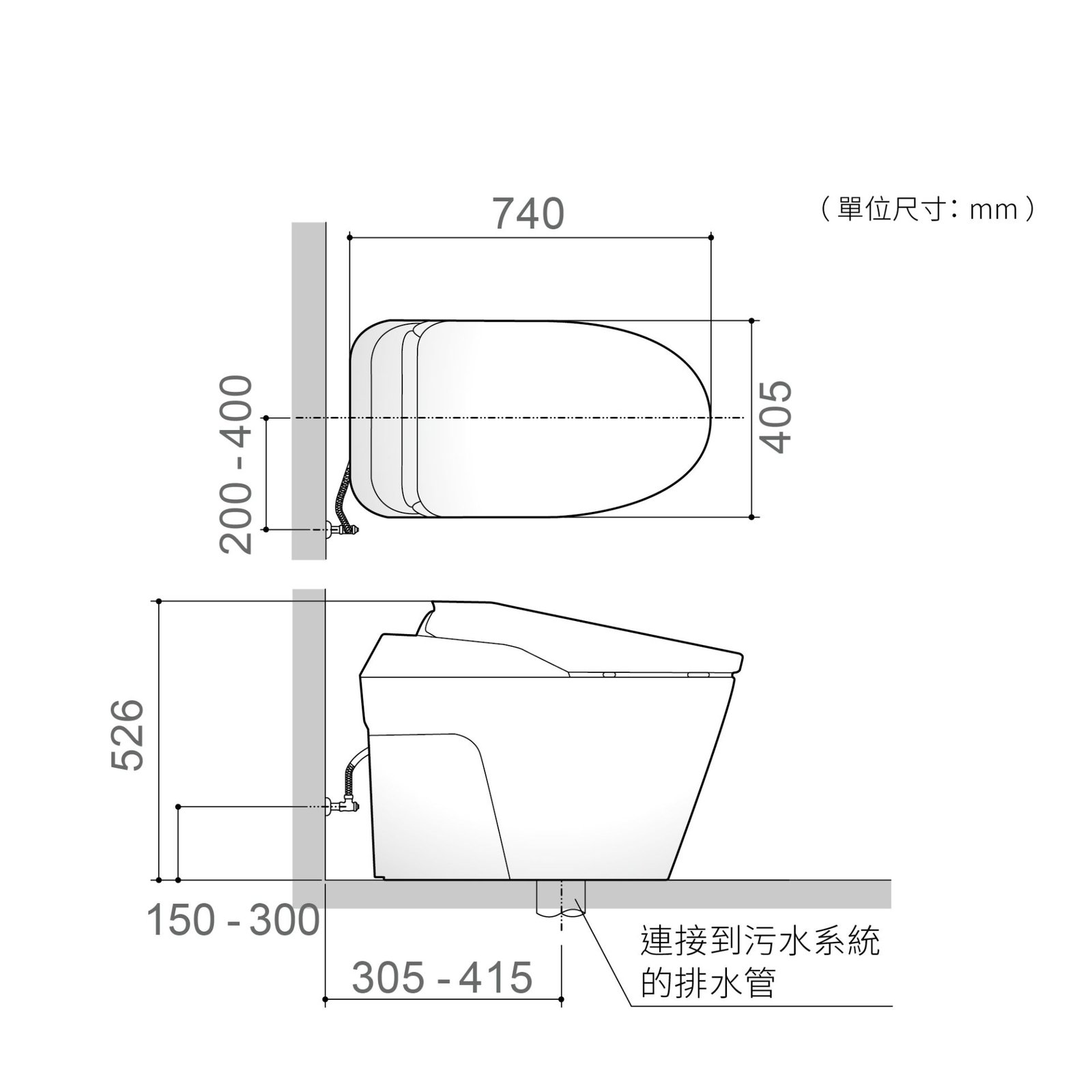 地板排水管可同時對應兩種管距,方便工事靈活對應,可調整為305 mm或400 mm。