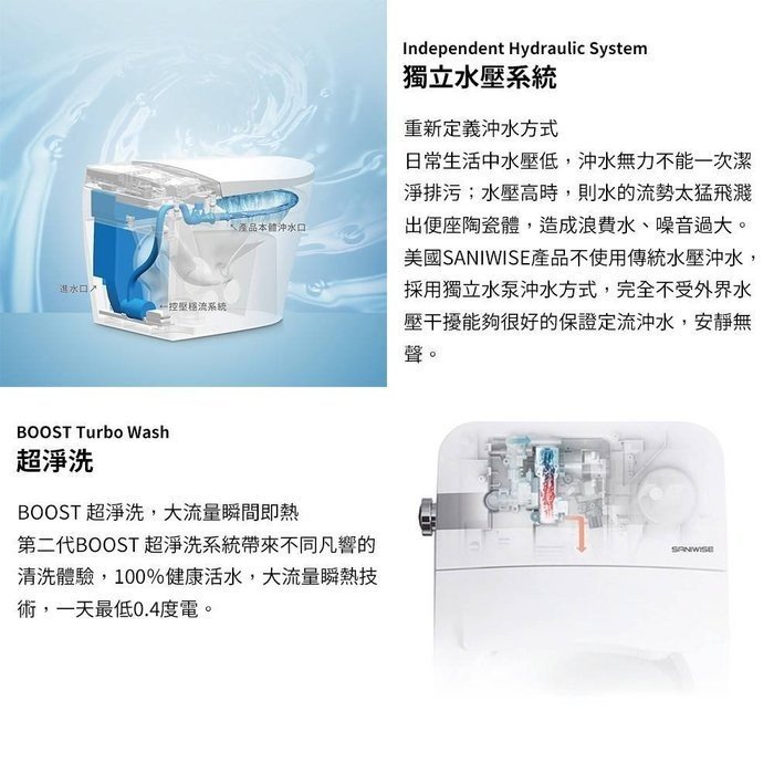 SANIWISE 獨立水壓系統 微電腦免治馬桶 DQ80