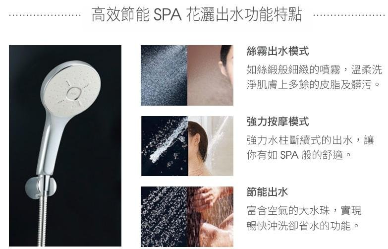 • 花灑芯自動混合水溫,具有極為安全的溫度鎖定