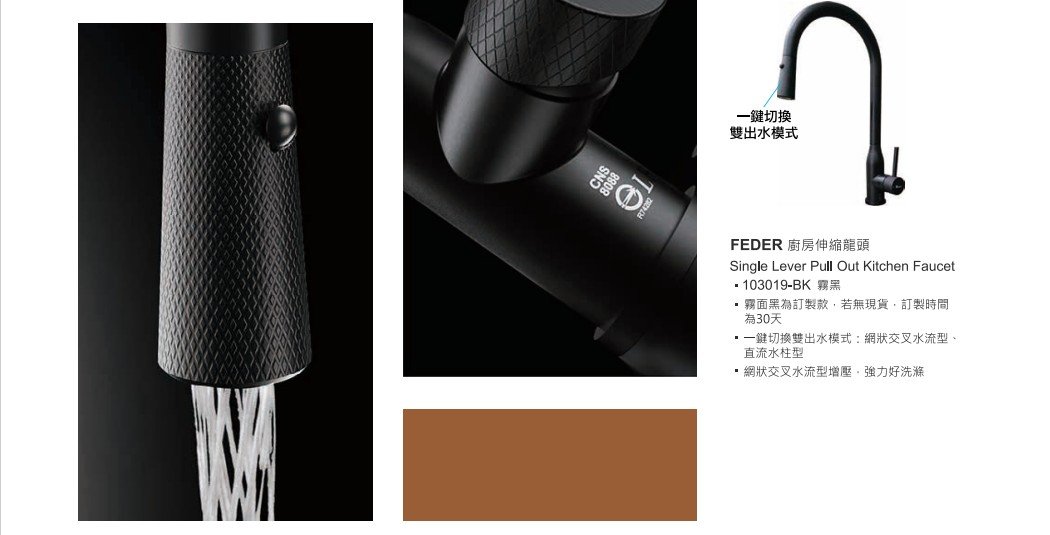拉出式廚房不鋼水龍頭為了安全及乾淨的家庭飲用水,取得國家標檢局CNS8088認證,美國UPC認證,使用SUS304不鋼,含量18-8符合國際標
