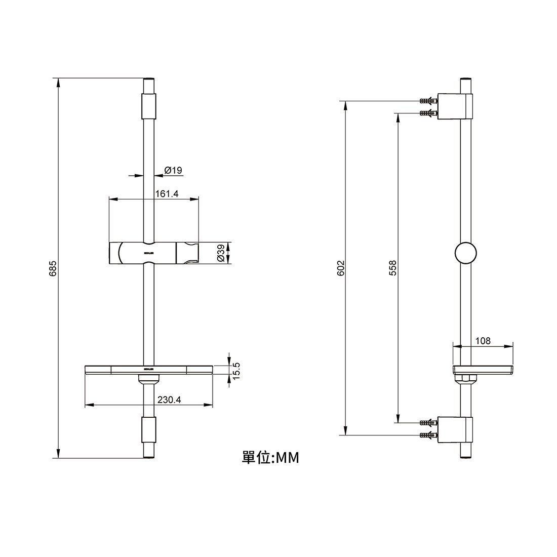 KOHLER ACCLIL淋浴升降桿,60Cm (含置物盤) K-26789-CP/AF/BN/BL