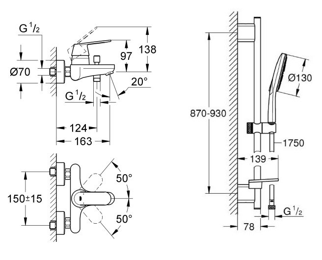 GROHE EUROSMART COSMOPOLITAN 浴用龍頭滑桿組 32831GL0 (冷冽金)