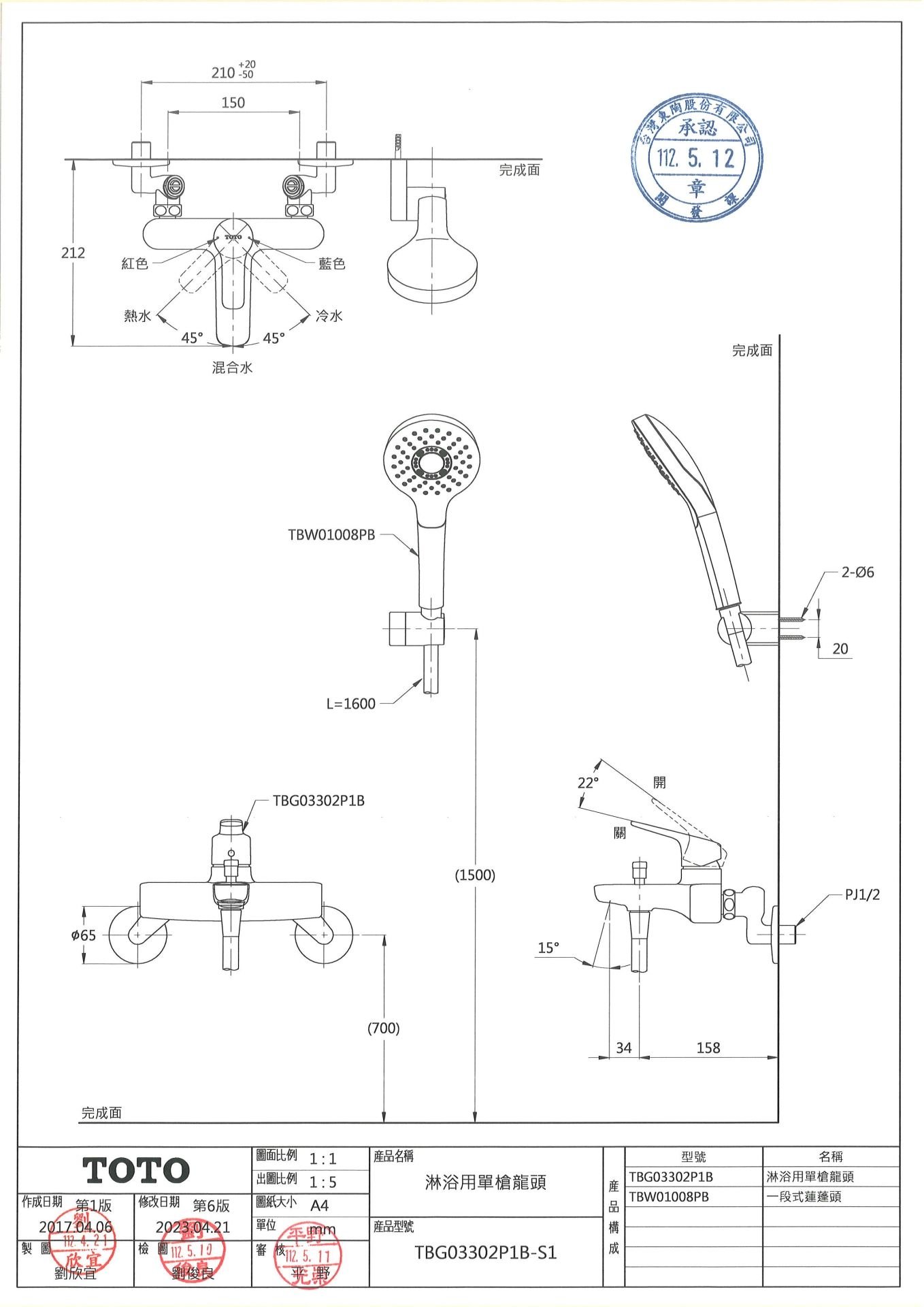 TOTO 淋浴用單槍龍頭 TBG03302P1B-S1