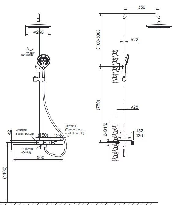 innoci 大平面淋浴柱花灑組_控溫_流沙金 ND2255BG