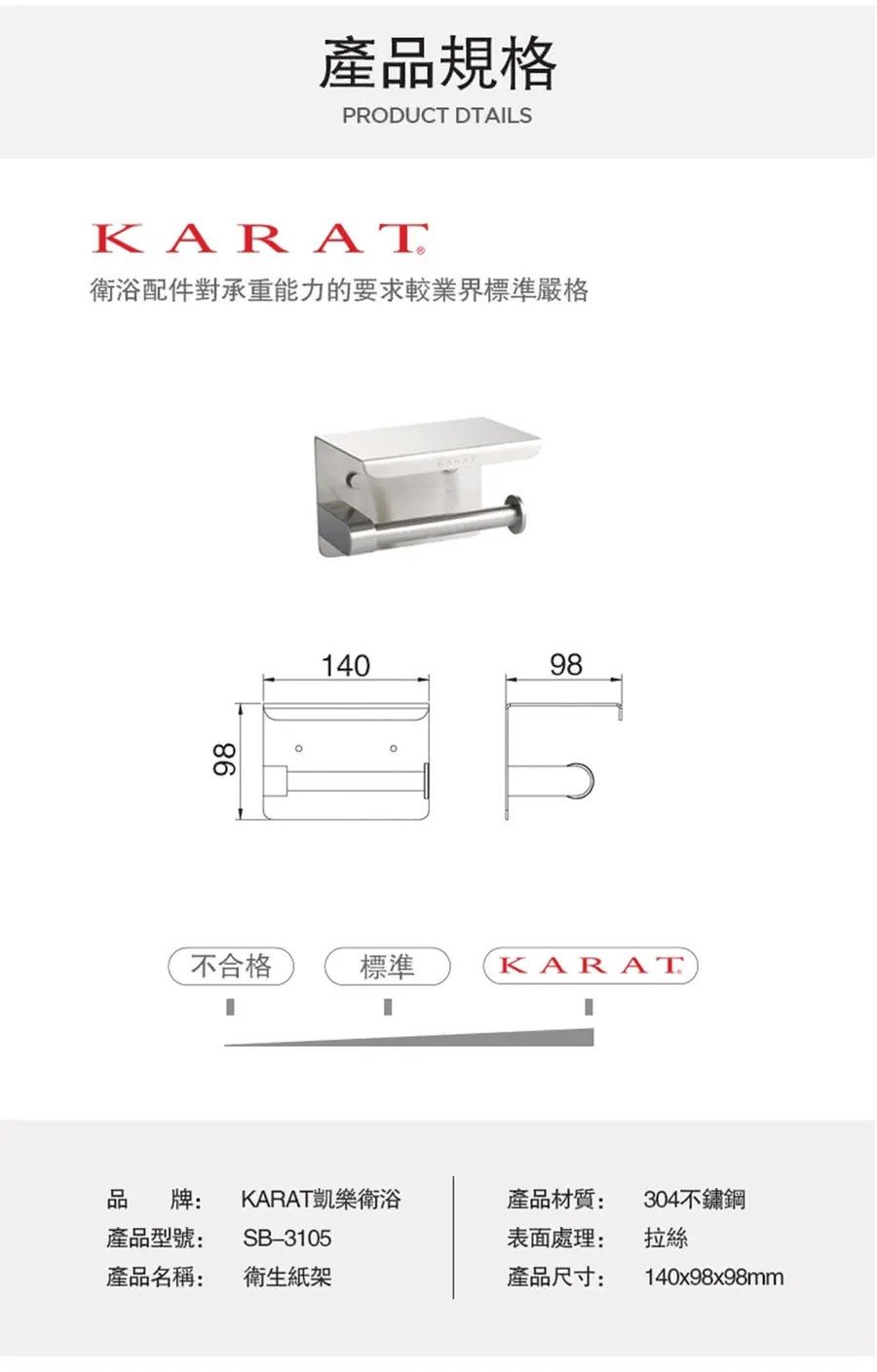 【KARAT】單捲不鏽鋼衛生紙平台架-拉絲 SB-3105