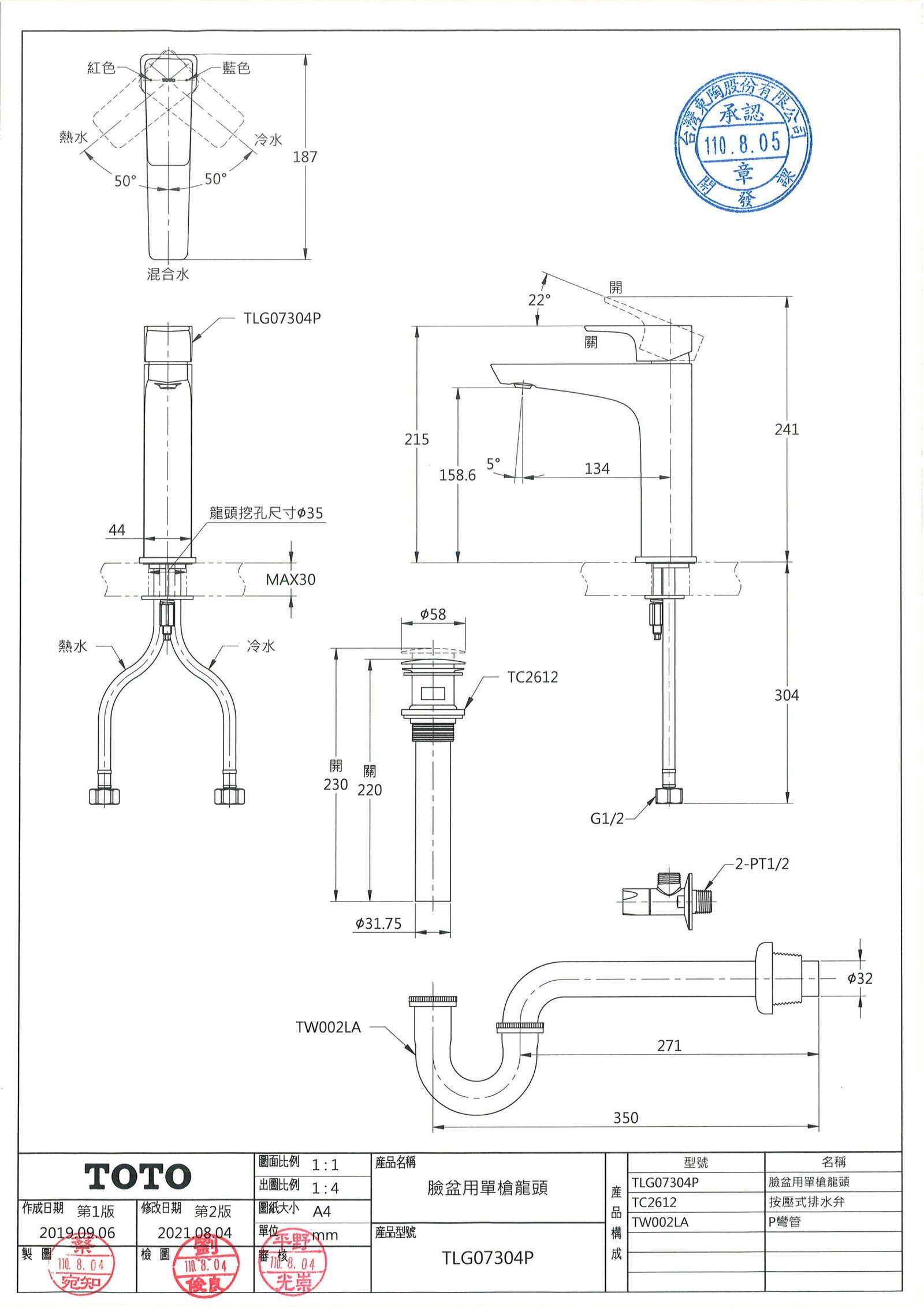 TOTO 臉盆用單槍龍頭 (中) TLG07304P
