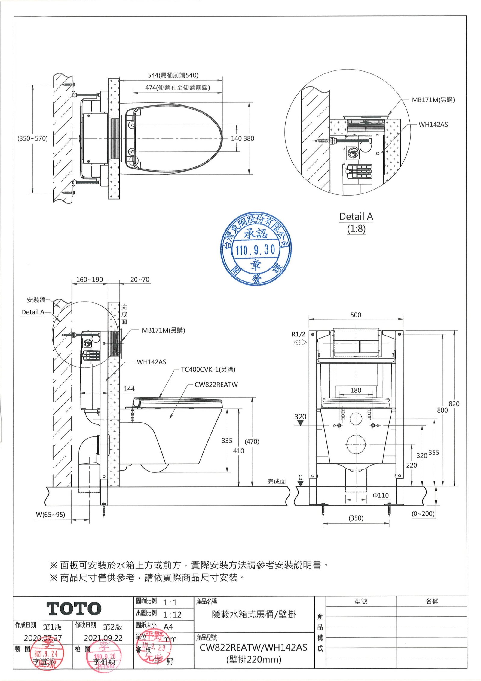 備  註 : 搭配藏線式WASHLET時水箱需求略有不同,請洽經銷商。