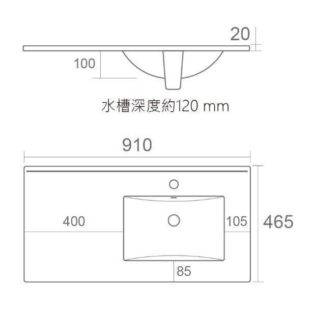 規格 : ☑ 檯面盆 91CM