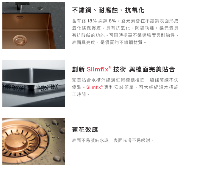 .三層特殊塗層處理,達到完美疏水與疏油特性,防止水漬生成