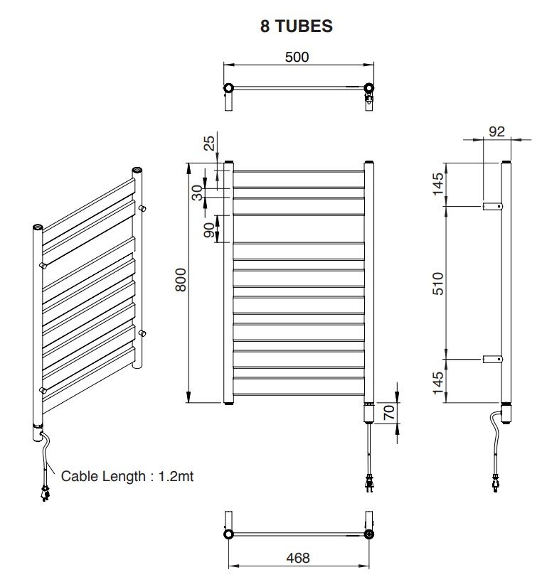 • 不銹鋼電熱毛巾架(304級,毛絲面和拋光處理)