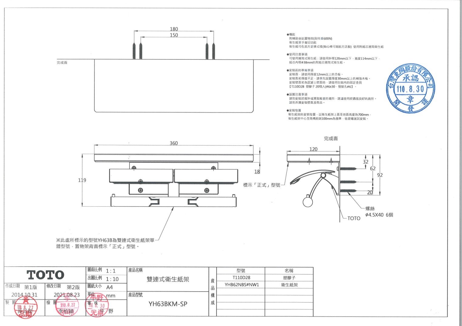 TOTO 浴室配件 雙連式衛生紙架 YH63BKM-SP