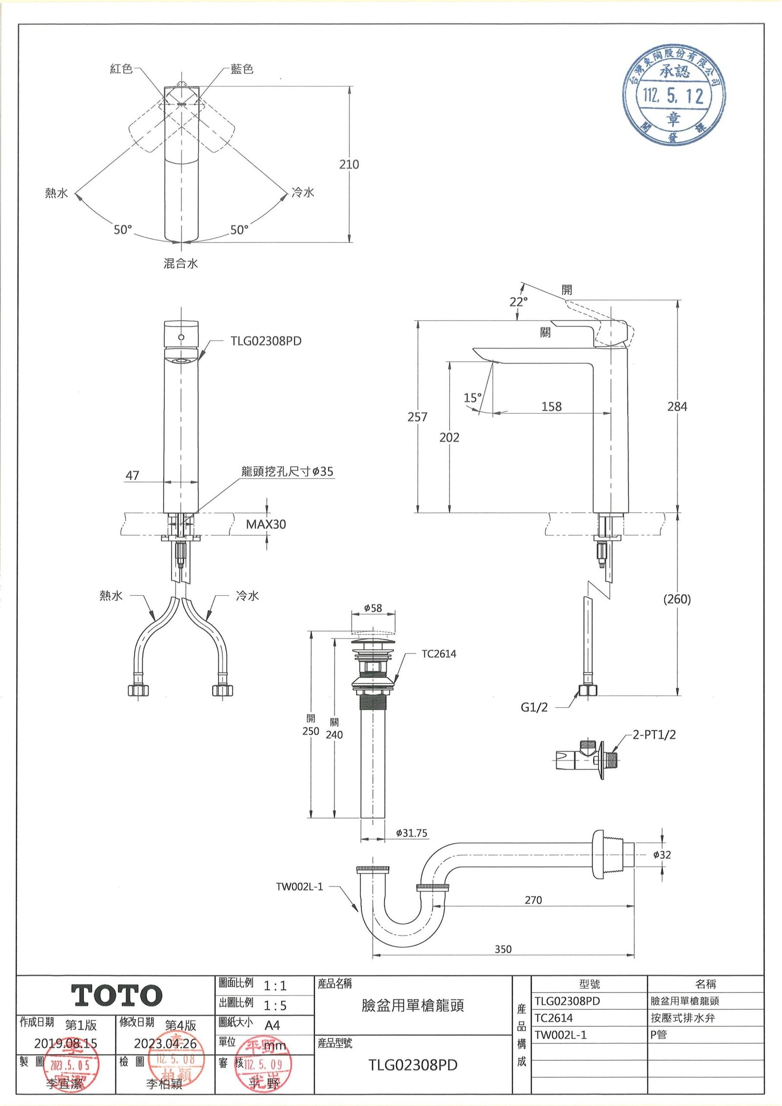 備 註 : 附按壓式排水零件