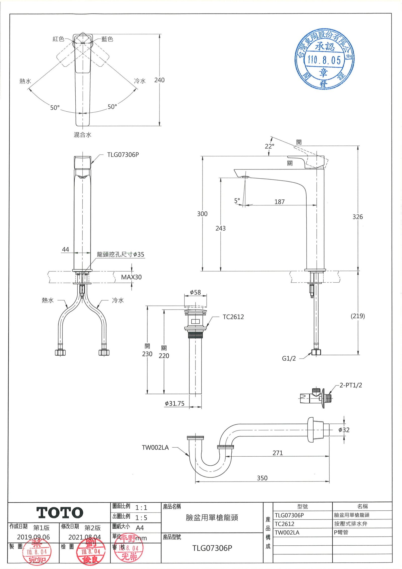 TOTO 臉盆用單槍龍頭 (中) TLG02306PD